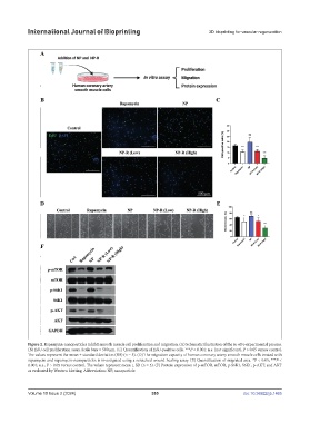 The values represent the mean ± standard deviation (SD) (n = 5). (D) The migration capacity of human coronary artery smooth muscle cells treated with