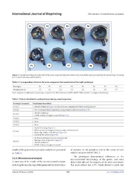 Table 3. Defects identified in each prototype during visual inspection