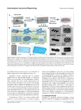 Figure 9. Polyvinyl alcohol (PVA) material. (A) A schematic illustration of the fabrication process of slippery PVA hydrogel contact lens using 3D-printed