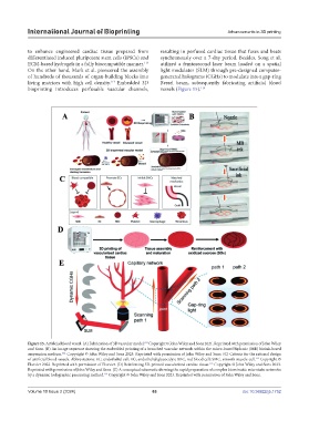 Elsevier 2022. Reprinted with permission of Elsevier. (D) Reinforcing 3D-printed vascularized cardiac tissue.  Copyright © John Wiley and Sons 2023.