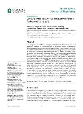 Accepted: October 26, 2023  Keywords: PEDOT:PSS; 3D printing; Conductive hydrogel; Biomedical sensor