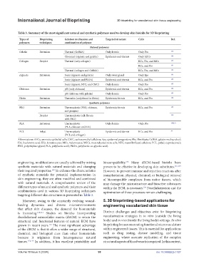 Table 3. Summary of the most significant natural and synthetic polymers used to develop skin bioinks for 3D bioprinting