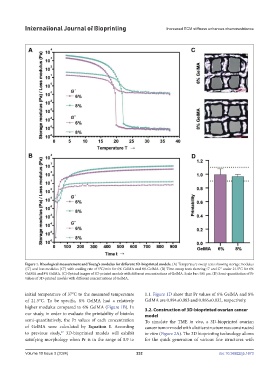 Figure 1. Rheological measurement and Young’s modulus for different 3D-bioprinted models. (A) Temperature sweep tests showing storage modulus