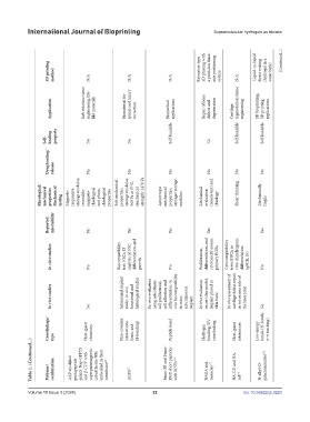 3D printing method N/A N/A N/A Extrusion-type 3D printing with a precision three- axis positioning system N/A Liquid-in-liquid direct writing (hydrogel in a water bath) (Continued...)