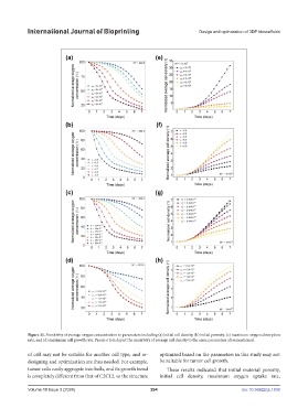 Figure 11. Sensitivity of average oxygen concentration to parameters including (a) initial cell density, (b) initial porosity, (c) maximum oxygen absorption