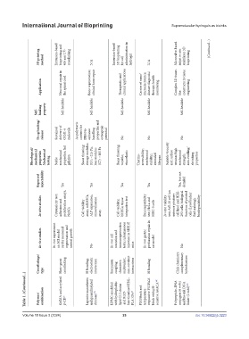 3D printing method Extrusion-based bioprinting and 405 nm UV- crosslinking N/A Extrusion-based 3D bioprinting for cell administration in hydrogel N/A Microvalve-based inkjet in situ multilayer 3D bioprinting (Continued...)