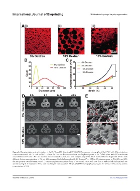 concentrations at (i) 5%, (ii) 10%, and (iii) 15% w/v. (B) Pore size distribution of dextran droplets dispersed in the GelMA phase with different dextran