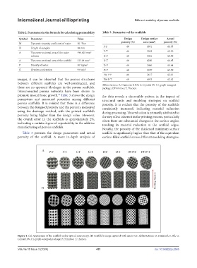 Table 2. Parameters in the formula for calculating permeability Table 3. Parameters of the scaffolds