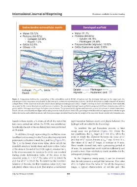 gelatin and the fibrinogen occurring at the highest concentrations. The polysaccharides alginate and hyaluronic acid are also present in the ink formulation.