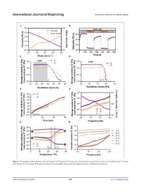 stress sweep, (E) time sweep, (F) frequency sweep, (G) temperature sweep, and (H) frequency sweep at different temperatures.