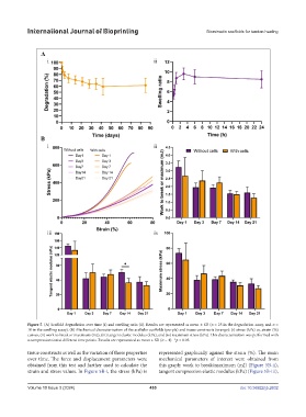 tissue constructs as well as the variation of those properties represented graphically against the strain (%). The main