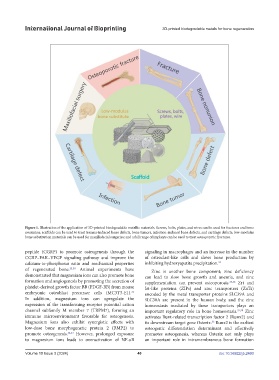 Figure 1. Illustration of the application of 3D-printed biodegradable metallic materials. Screws, bolts, plates, and wires can be used for fractures and bone