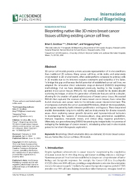 Received: February 9, 2024 Keywords: Bioprinting; Direct volumetric drop-on-demand; 3D micro breast cancer