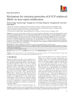 Citation: Deng Y, Yang Y, Gao C, et al., 2018, Mechanism for corrosion protection of β-TCP reinforced ZK60 via laser rapid