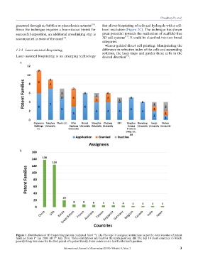 Figure 1. Distribution of 3D bioprinting patents (Adapted from ): (a) The top 10 assignee institutions as per the total number of patent