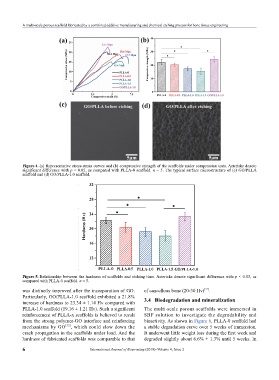 significant difference with p < 0.05, as compared with PLLA-0 scaffold. n = 5. The typical surface microstructure of (c) GO/PLLA