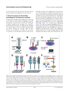 Figure 1. Three-dimensional bioprinting technologies for anti-infection materials. (A) Fused deposition modeling (FDM) technique can be used to melt