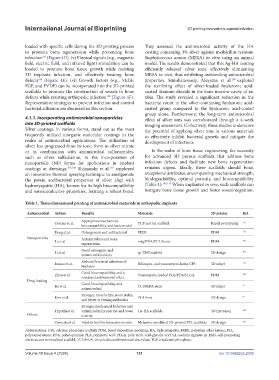 Table 1. Three-dimensional printing of antimicrobial materials in orthopedic implants