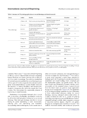 Table 3. Summary of 3D printing applications in wound dressings and dental materials