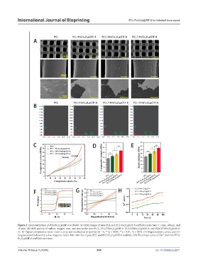 Figure 2. Characterization of PCL/Fe O @ZIF-8 scaffolds. (A) SEM images of pure PCL and PCL/Fe O @ZIF-8 scaffolds (scale bars = 1 mm, 100 µm, and