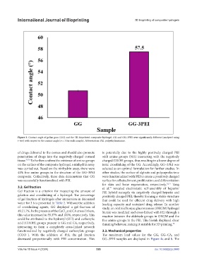 Figure 3. Contact angle of gellan gum (GG) and the 3D-bioprinted composite hydrogel. GG and GG–3PEI were significantly different (analyzed using