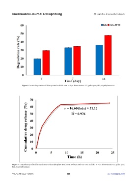 Figure 6. In vitro degradation of 3D bioprinted scaffolds over 14 days. Abbreviations: GG, gellan gum; PEI, polyethyleneimine.