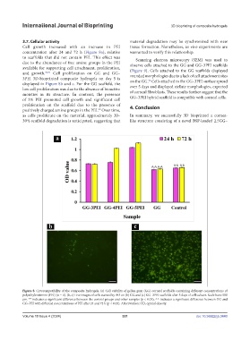 3PEI 3D-bioprinted composite hydrogels on day 5 is on the GG. Cells attached to the GG–3PEI surface spread