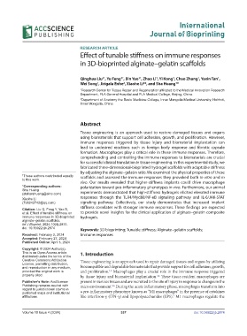 doi: 10.36922/ijb.2874 Keywords: 3D bioprinting; Tunable stiffness; Alginate–gelatin scaffolds;