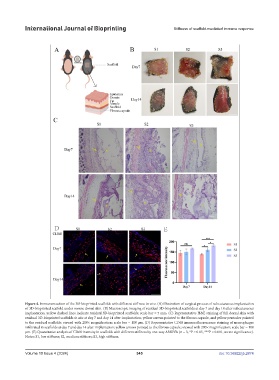 implantation; yellow dashed lines indicate residual 3D-bioprinted scaffolds; scale bar = 5 mm. (C) Representative H&E staining of full dorsal skin with