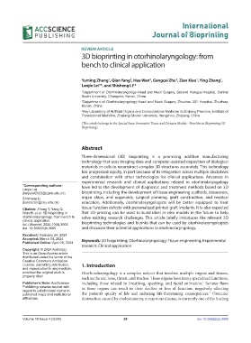 Accepted: March 14, 2024 Keywords: 3D bioprinting; Otorhinolaryngology; Tissue engineering; Experimental