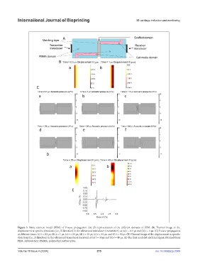 directions (i.e., X direction) in the ultrasound transducer (receiver) at (a) t = 35 µs and (b) t = 40 µs. (E) The final modeled electrical signal obtained from