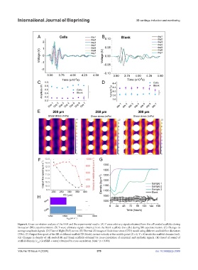 (G) Changes in density of cell-seeded BR and blank scaffolds obtained by cross-correlation of empirical and synthetic signals. (H) Speed of sound of