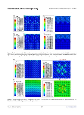 Figure 5. Compression simulation results of mixed-porous structure: (a) stress cloud map and (b) displacement nephrogram. Abbreviations: Mises: Von