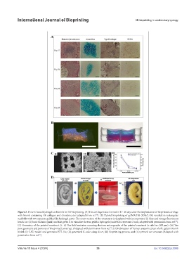 Figure 2. Protein-based hydrogels as bioinks for 3D bioprinting. (A) The cartilage tissue formed in 17–40 days after the implantation of bioprinted cartilage