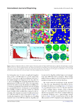 Figure 11. Electron backscatter diffraction (EBSD) analysis of the laser powder bed fusion (LPBF)-fabricated Zn–Mg alloy with and without annealing