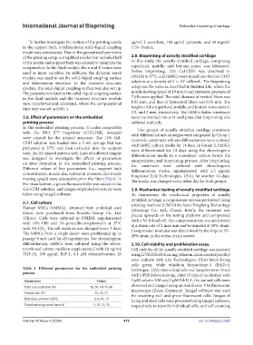 Table 1. Different parameters for the embedded printing Invitrogen, USA) stains dead cells red. Samples were rinsed