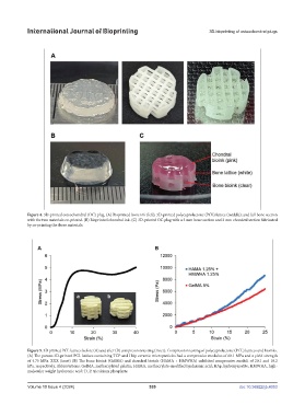 of 4.75 MPa. XXX (inset) (B) The bone bioink (GelMA) and chondral bioink (HAMA + HMWHA) exhibited compressive moduli of 20.1 and 18.2