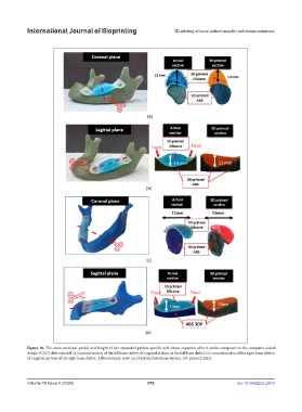 design (CAD) defect model: (a) coronal section of the left bone defect; (b) sagittal section of the left bone defect; (c) coronal section of the right bone defect;