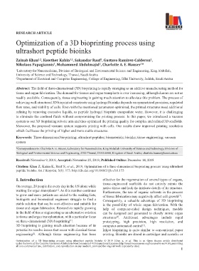 Citation: Khan Z, Kahin K, Rauf S, et al., 2019, Optimization of a three-dimensional bioprinting process using ultrashort