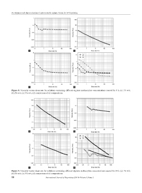 Figure 9. Viscosity versus shear rate for solutions containing different alginate methacrylate concentrations reacted for 24 h. (a) 1% w/v,