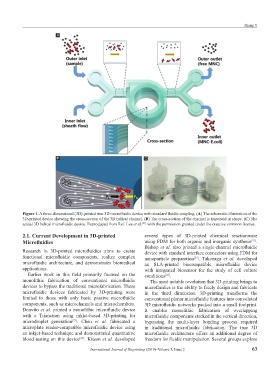 Figure 1. A three-dimensional (3D)-printed true 3D microfluidic device with standard fluidic coupling. (A) The schematic illustration of the