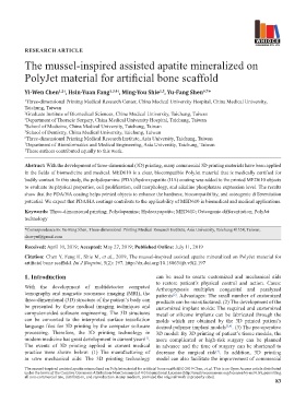 Citation: Chen Y, Fang H, Shie M, et al., 2019, The mussel-inspired assisted apatite mineralized on PolyJet material for