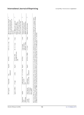 dECM; gelatin Agarose; GelMA GelMA Shell: Alginate; methylcellulose Core: Collagen; fibrin; gelatin