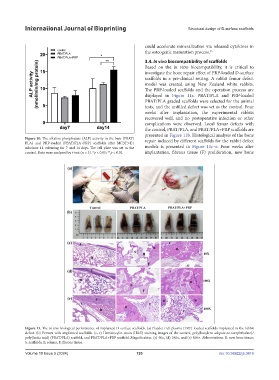 Figure 11. The in vivo biological performance of implanted D-surface scaffolds. (a) Platelet-rich plasma (PRP)-loaded scaffolds implanted in the rabbit