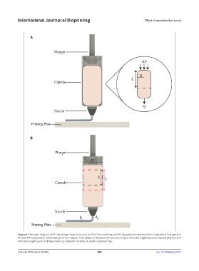 Figure 8. Schematic diagram of (A) the plunger-based extrusion for fluid flow modeling and (B) the graphical representation of ingredient flow speed in