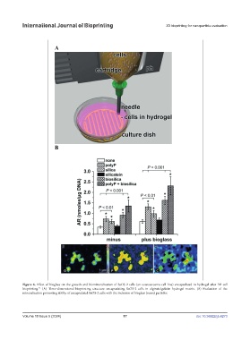 bioprinting.   (A)  Three-dimensional bioprinting  structure  encapsulating  SaOS-2  cells  in  alginate/gelatin  hydrogel  matrix.  (B)  Evaluation of  the