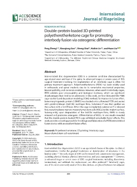 3D-printed polyetheretherketone that the double-protein-loaded PEEK cage exhibited remarkable fusion effects. This