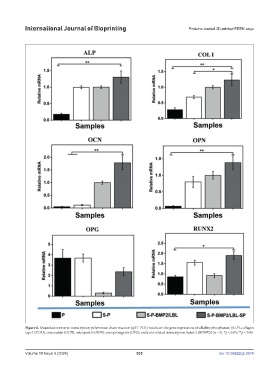 Figure 6. Quantitative reverse transcription polymerase chain reaction (qRT-PCR) results on the gene expressions of alkaline phosphatase (ALP), collagen