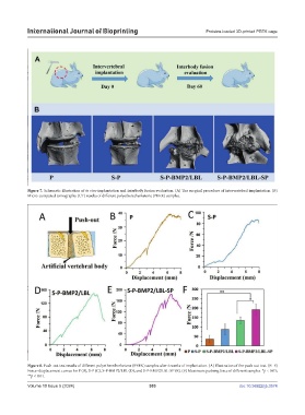 Figure 7. Schematic illustration of in vivo implantation and interbody fusion evaluation. (A) The surgical procedure of intervertebral implantation. (B)
