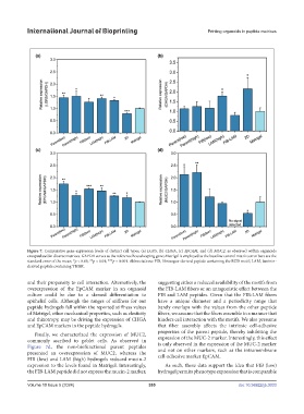 Figure 7. Comparative gene expression levels of distinct cell types, (a) LGR5, (b) CHGA, (c) EpCAM, and (d) MUC2, as observed within organoids